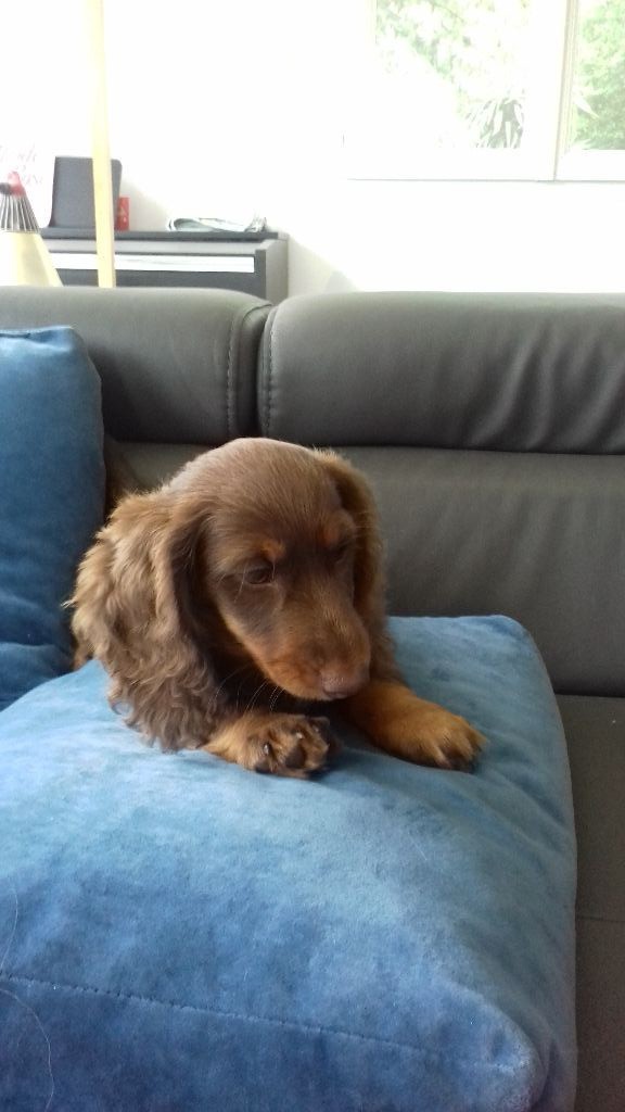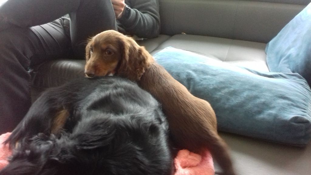 Il vit avec nous en famille, entouré d'enfants et de teckels.